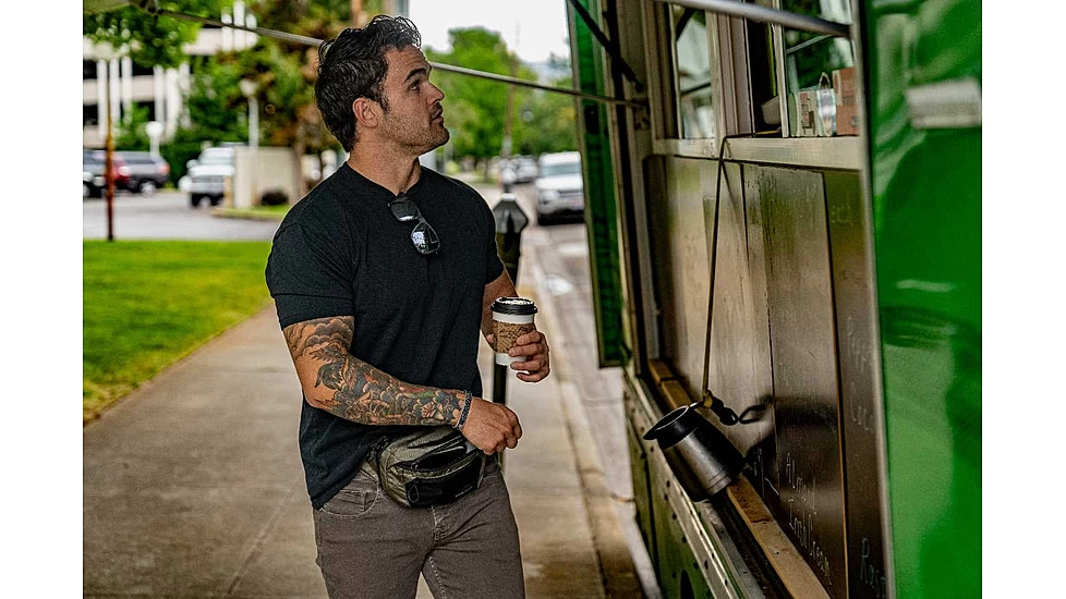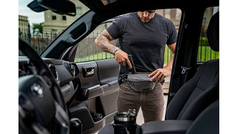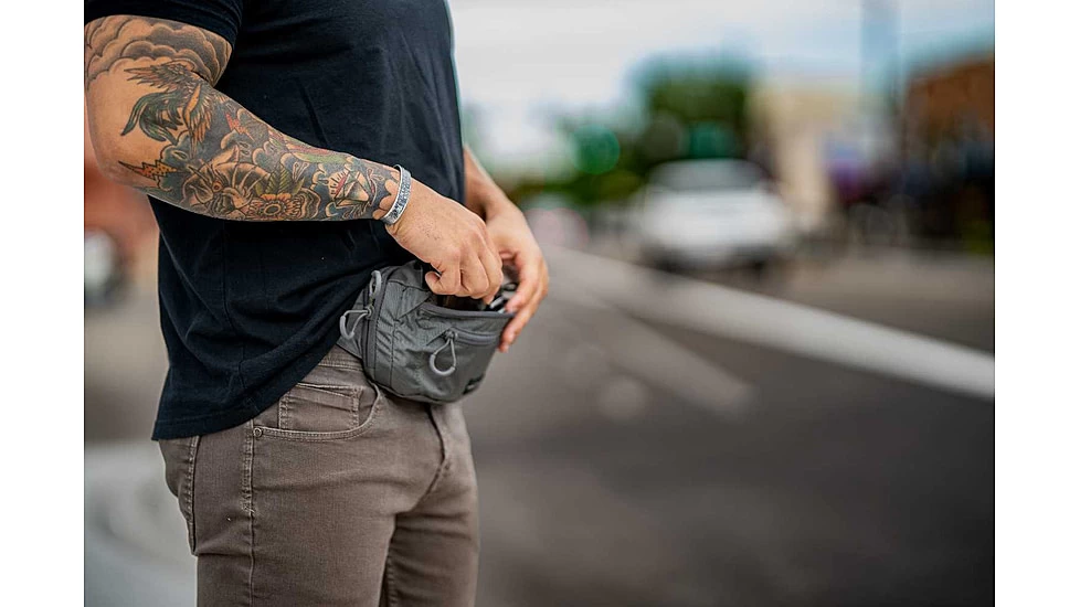 Like an ammunition Bandolier, the Bando Bag is a lightweight and convenient way to transport your EDC items. A full-zip back pocket measures to 5.5in h x 9.5in w x 1in d, large enough to secure most sub-compact and compact sidearms like the Glock-19 and those similar in size or smaller. The main compartment features an interior mesh zippered pocket, and two slip pockets for additional organization. A small zippered front pocket is perfect for keys, cords, or other small items.![]()