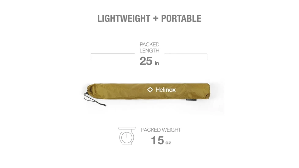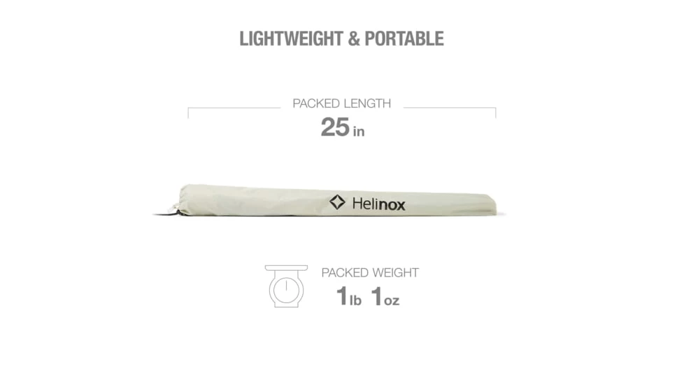 A simple clip and ladder-lock system makes deploying and tensioning Personal Shade simple. Simply attach the clip, then pull the nylon webbing strap. The ladder lock will hold it place, keeping your shade taught, even on windy days. Release is simple just lift the tab on the ladder lock to release tension, unhook the clip, and pack up.