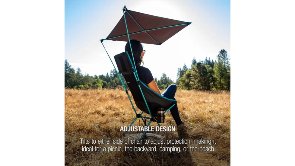 The UPF 50+ ripstop nylon canopy shields you from UV rays and can be adjusted to move with the sun as the canopy tilts from side to side through the adapters that fit the Chair One, Chair One L, Chair Two, Sunset Chair, Beach Chair, Playa Chair and Savanna Chair