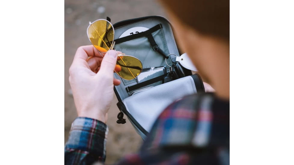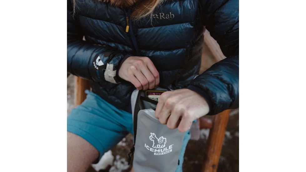 This storage pouch attaches to or slips behind the bungees on yourIceMule Pro Cooler. It features extra-tough 1000-denier tarpaulin fabric, awater-resistantzipper, wallet/phone pockets and a keys clip. This pack willnotfloat. Be careful to not fully submerge into water.![]()