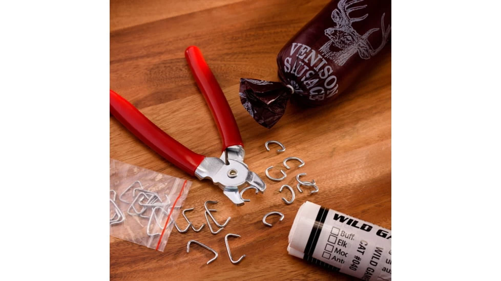 Make sure your meat bags are tied up tight with these Hog Rings And Pliers. Pliers and rings are used to clamp sausage casings or ground meat bags after filling. You can also use these pliers and rings to close bags, fish netting, mesh traps and much more!![]()