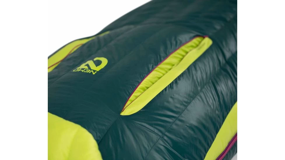 Classic Spoon shape adds room at elbows and knees for versatile comfort. Premium 650FP hydrophobic, PFC-free, 100% RDS Certified down is traceable and ensures humane treatment throughout the supply chain. Waterproof/breathable footbox protects from tent condensation, keeping feet warm and dry. Blanket Fold external draft collar and a full-length draft tube provide tucked-in comfort and temperature regulation. Thermo Gills allow you to vent body heat without letting cold drafts in. Full-length double-slider #5 YKK zipper with zipper plow makes getting in and out of the bag a breeze. Integrated pillow pocket allows a jacket, extra clothes, or Fillo to be stuffed into the sleeve opening for secure, elevated support through the night. Opposite-sided zippers on Disco Men’s and Women’s models increase versatility by allowing them to be zipped together into a double sleeping bag. Protected by the NEMO Lifetime Warranty. Patent # D804,780. Patents pending.![]()