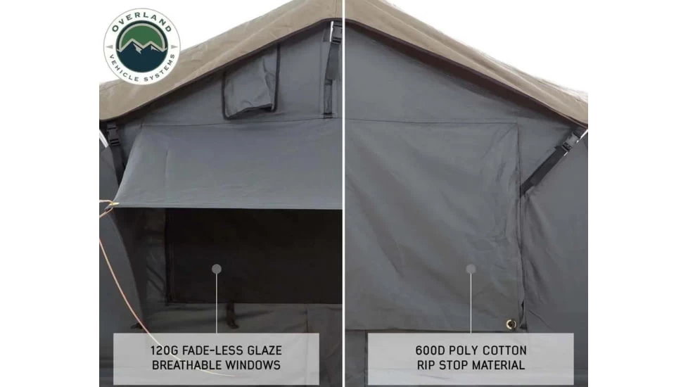 Our Nomadic tents start with a double insulated one-piece black diamond plate base featuring marine grade stainless steel hinges and hardware. Our 600D Premium Double Rip Stop Polyester Cotton Canvas bodies will handle the harshest conditions you can put yourself in.