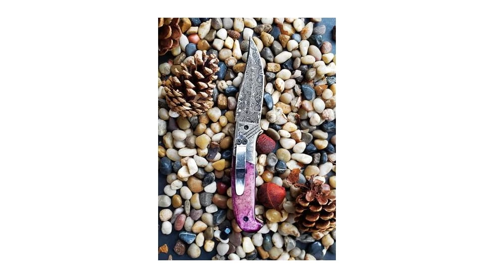 The Dyed Camel scales gives the handle a natural feel when held in the hand. The hole features one hand opening and the brass liner Springs in place to lock the blade when fully opened. We carefully machine to make sure there is no play.