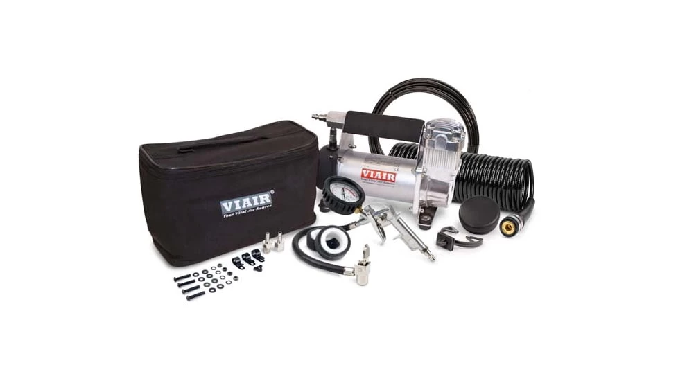 400H Hardmount Compressor Kit, 12V, 33% Duty, Sealed. The 400H-Automatic Compressor (400H-A) is VIAIRs newest addition to our H model family. This compressor is CE certified and IP54 Rated. With 33% duty cycle, this hard mount compressor is intended to fill tires up to 35 and can be operated for up to 40 minutes at a time before needing to be rested (at up to 40 PSI). The 400H-A comes with a built-in, moisture resistant On/Off power switch and automatic shut-off function. The 400H-Automatic comes with a 30ft inside braided coil hose, Gas Station-Style Tire Inflation Gun with 160 PSI Gauge and a carry bag for added convenience. Compressors with automatic shutoff come into play when moving from tire to tire, and when checking tire pressure in the middle of a tire fill. H standard compressors must be turned off between tire fills, and anytime you want to check tire pressure. If you arent near the compressor, this can turn into running laps back and forth to the compressor to turn the unit on and off. Automatic compressors do not work in this fashion and will save you time & effort to get tires inflated quickly.![]()